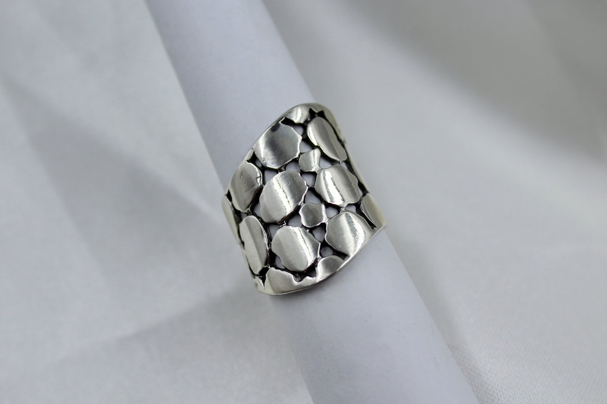 ANILLO DE PLATA 925, MEDIDAS 2CM DE ALTO, EN FORMA ONDULADO
